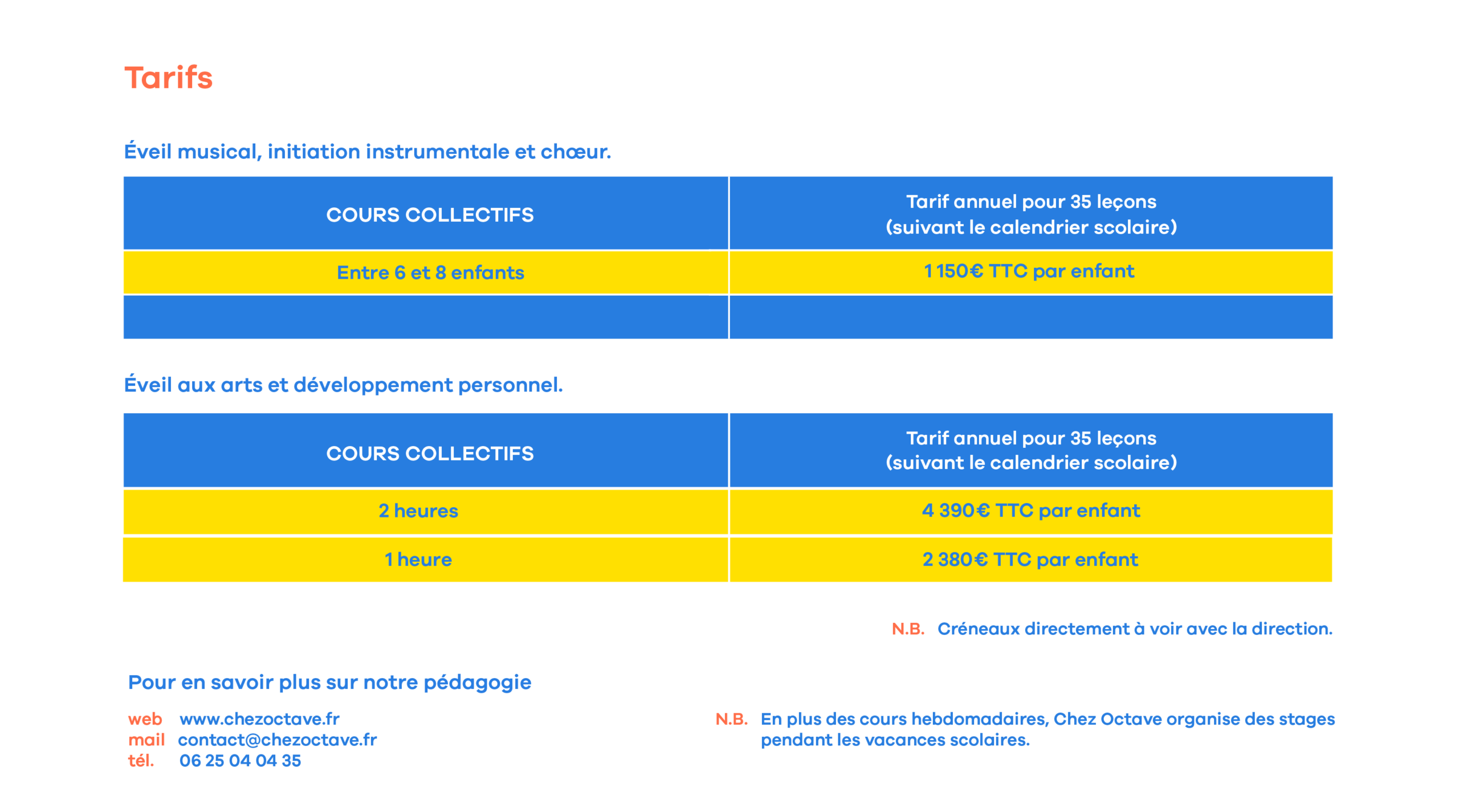 | 2 heures | 4 390 € TTC par enfant |
